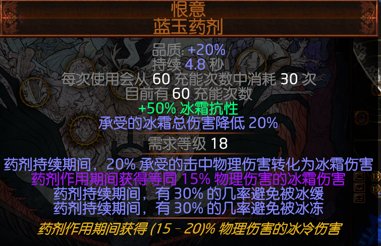 药水核心:解腐化之血+免疫诅咒+提升护甲+增加速度+增加秒回+防冰冻冰缓 (药剂时间要尽量一致)