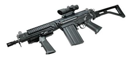 这把新武器根据比利时FN fal的基础上改进,全程sa58 rifle,英文字母刚好跟官方图片上的吻合。