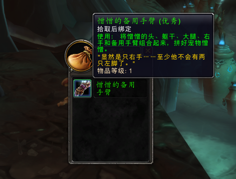 但是实际上这只宠物并不需要马卓克萨斯噬渊突袭,只要我们在噬渊找到憎憎的五个身体残片就可以自己拼接这只小食尸鬼了。