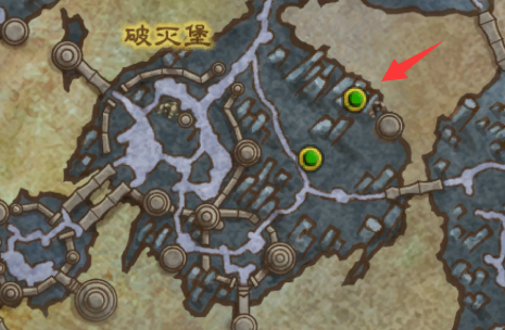 注意是在城墙外面,玩家在破灭堡外面,面朝着破灭堡的大铁门的时候,右手边有一条小路,就在差不多箭头指着的位置: