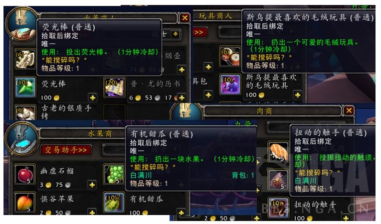 探索思路及尝试过程:成就要求被四种搅碎的物质覆盖时击杀BOSS,达成成就四个关键词:四种、搅碎的物质、覆盖、击杀。由于在房间内并没有找到有关联性的物品,我们回到刚进副本处,发现有四个售卖NPC,分别为肉商、水果商、玩具商以及古董商。打开售卖目录发现每个NPC各有一个需要花费100G可购买的物品,物品说明上都有“能搅碎吗”字样,果断每种物品都买了一个再进BOSS房。接下来考虑怎么把物品搅碎并覆盖,结合过往经验,打开冒险手册查看BOSS技能,发现BOSS在施放[审讯]技能时会点名并囚禁一名玩家,而后靠近并施放利刃,我们猜测上述四种物品应该用于此处。随后按照猜想开启BOSS战。在BOSS施放几个技能后,出现了[审讯]技能,队友被点名并关进监禁室,在BOSS与监禁室之间产生一条连结红线,我们扔了一种物品在红线路径上,BOSS旋转利刃靠近的时候物品果然被切碎了,并向监禁室位置施放了很多圆形色圈,站在圈内的队友拿到了相应物品的BUFF。至此,确定了此成就的做法。