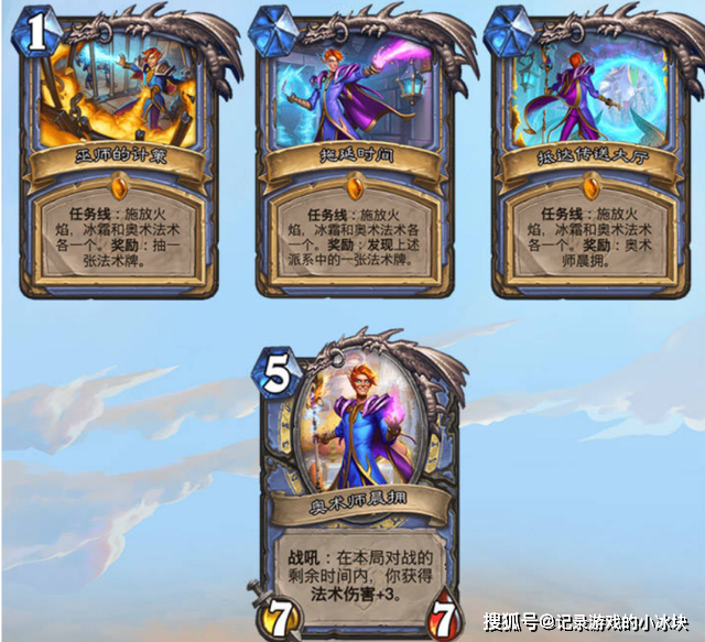 任务线奖励是法伤+3,但是需要牌组中有三种不同派系的法术。而新版本法师的其他卡牌,基本上都是强化火法路线,构筑一定会很有趣。