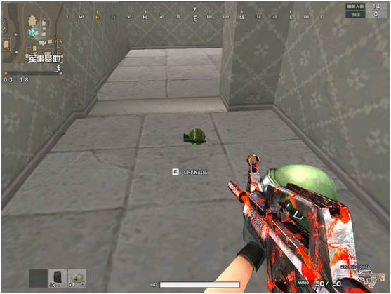 手雷,GRENADE,小型手榴弹,在一定范围内造成很高的伤害,使用于杀伤小规模范围内的多个目标。这个小手雷我就不用多说了吧,相信大家非常非常熟悉他了,这个手雷在PVP模式当中,没有AC的情况下完完全全可以炸死一个人。有AC的情况下是会炸掉55滴血,AC是会减掉19.大家看下图。