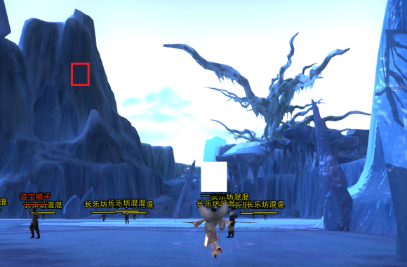位置不是很好找,附了两张图,近处看和远处看,就是长乐坊北边附近最高的冰山峭壁上,不在山顶上,在半山腰,结合图理解,红圈是雪莲。