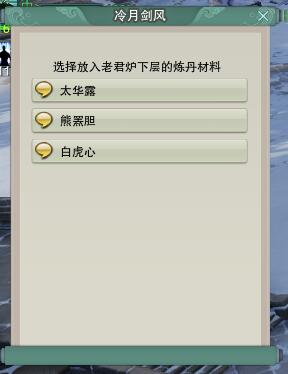 和【丹炉】对话,分别选择【金.冠草】和【太华露】