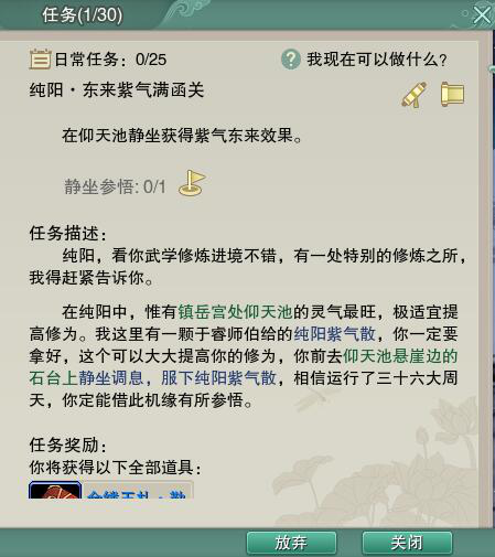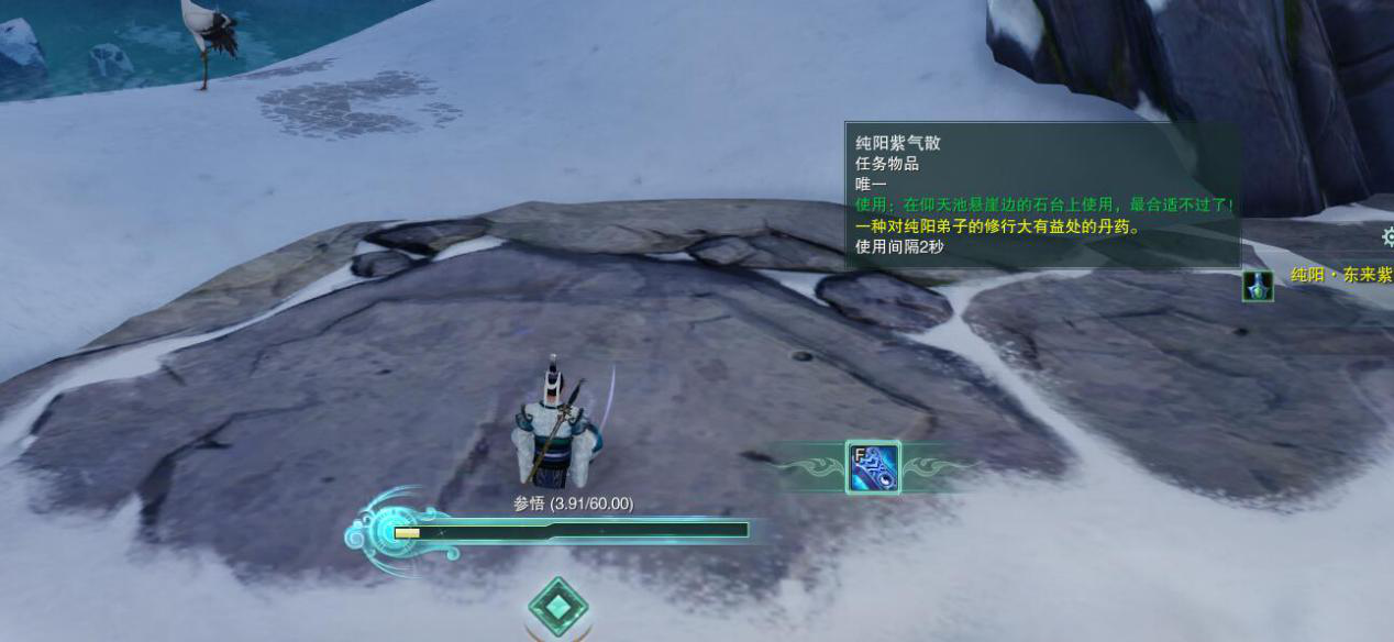 接取任务后来到如图所示地点,使用任务物品【纯阳紫气散】即可完成任务。