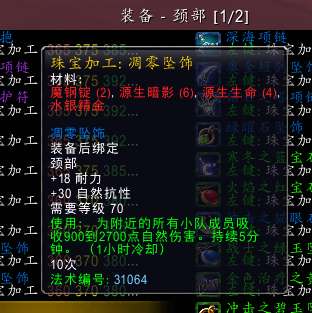 戒指:珠宝专业制作的自然屏障,图纸需要塞纳里奥远征队声望崇拜。以上5件加上附魔也有255点抗性了,胸腿手鞋4个部位可以使用自然护甲片,这样就287点了,加上到时候的buff与图腾,随随便便弄到375。其余部位穿戴自己平时的装备即可。