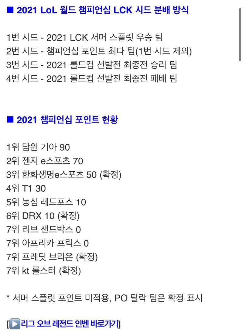 LCK官方于今日公开LCK赛区世界赛席位晋级细则,全年积分第二也将直接晋级世界赛,原文大意如下: