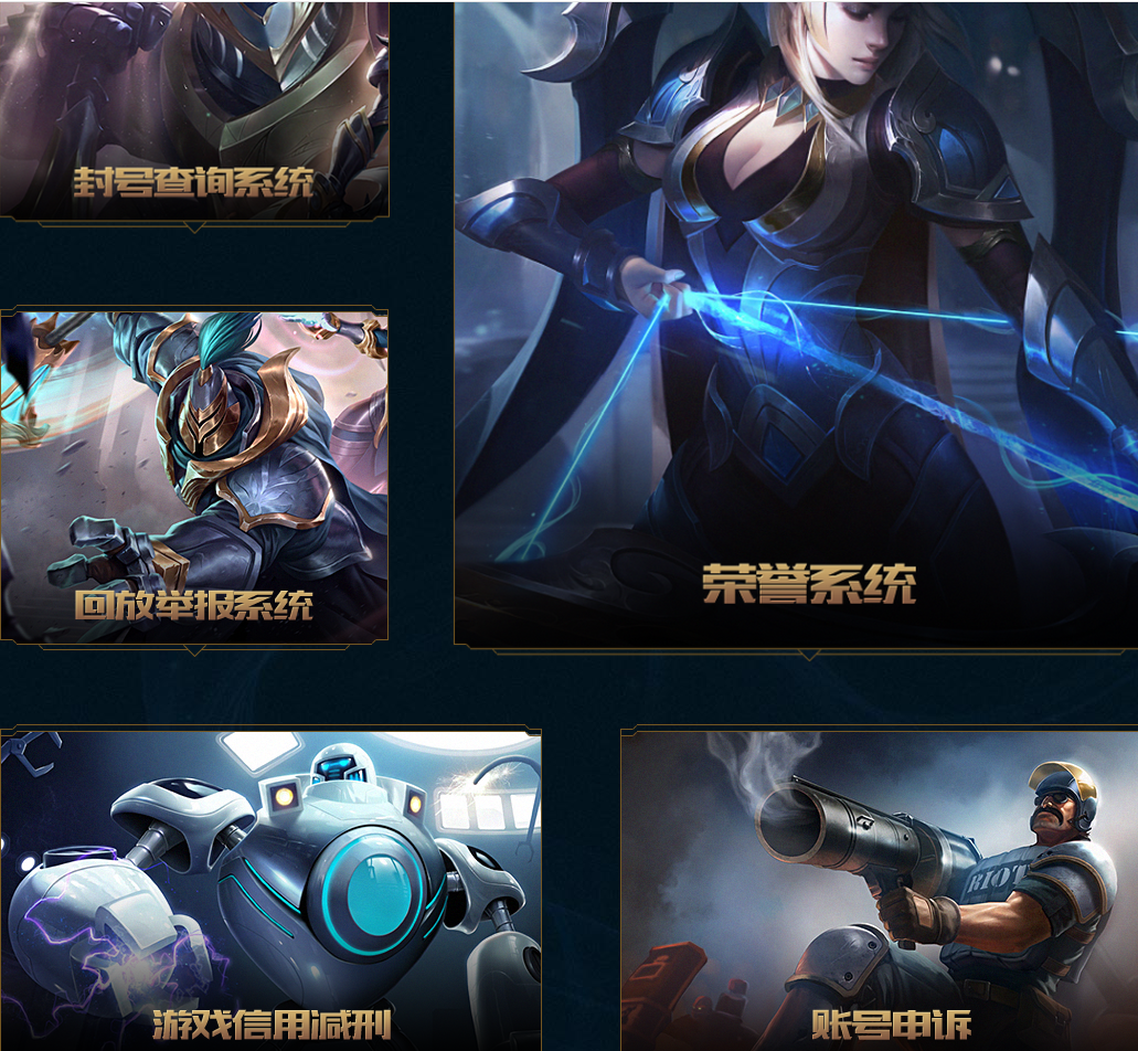 为了防止秩序殿堂被滥用或恶意投诉,秩序殿堂的五大守护骑士将会致力于保证充分的公平。首先,已经上线许久的荣誉系统进行了一定更新,守护荣誉的召唤师们,将获得更多道具奖励和荣誉奖励。而被举报或处罚的玩家,可以通过封号查询系统和回放举报系统查看自己所受的惩罚详情,包括惩罚原因和解封时间。