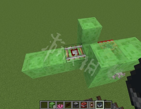 到另一边,后面随便放三个方块,然后在最前面放个探测铁轨。