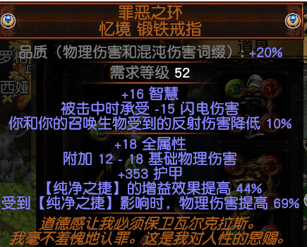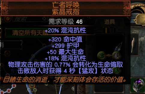 戒指:单纯为了刷图的时候常驻猛攻 手感比较好 还加血 加混沌抗 不绑定