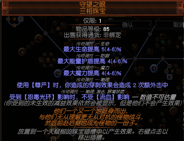 妄想症(只要恶毒穿刺一条 为了凑到100%穿刺几率) 可以用+穿刺几率的珠宝代替 我只是恰好看到一颗比较合适的