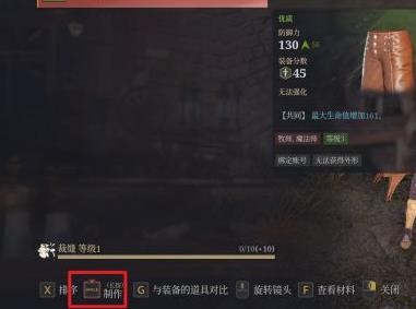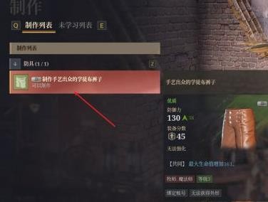 在制作列表选项中,我们就可以选择可以制作的装备。