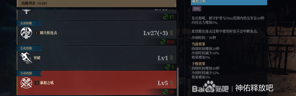 首先是技能加点。优先固定把暴怒之吼点到五级,可以给全队加百分之10的攻击力,这个是最省技能点的点法。