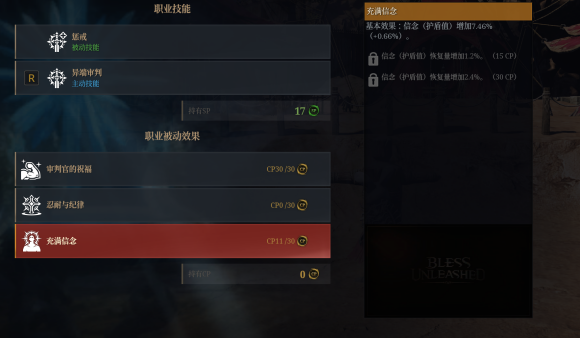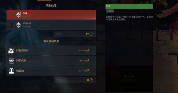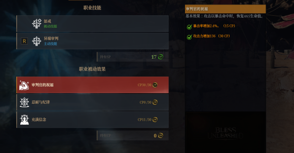 职业加点优先把审判官的祝福加满。暴击回复,加暴击率和攻击,不要太香虽然不多。