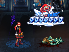 常规伤害字体是带着一层雪,9999999字体则是魔界人开冰车,还是比较可爱的。