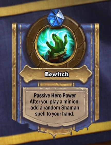 被动英雄技能:你使用一张随从牌后,随机将一张萨满法术置入你的手牌。