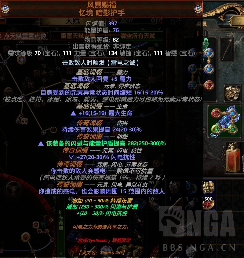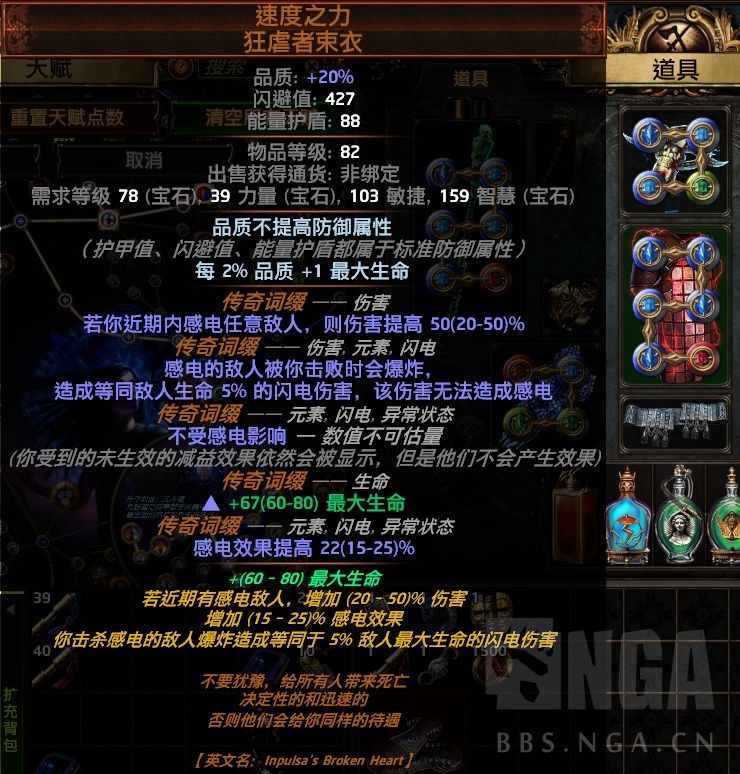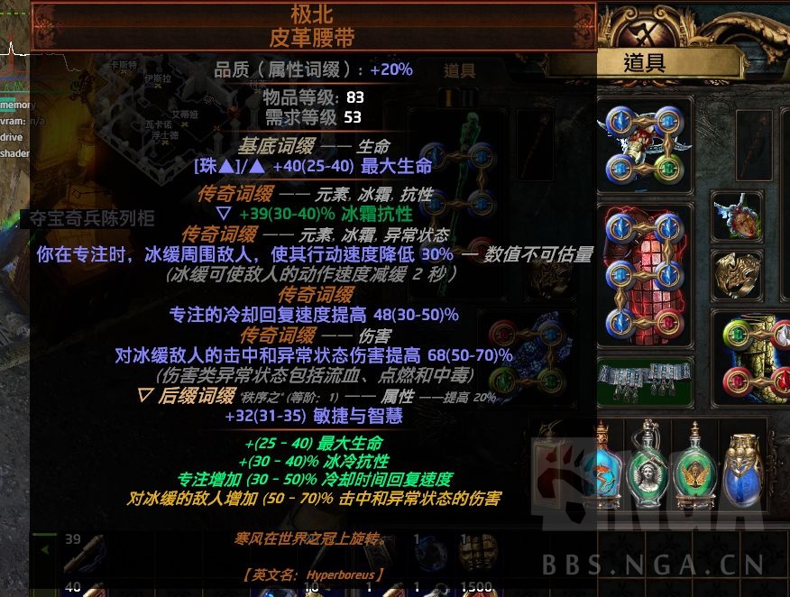 接下来是腰带,为什么单独要在这说呢。就在我为了我这个专注双倍困扰时候,这个腰带出现了,完美的属性契合。还可以搭配尸僵手。伤害更高,这也就是为什么单独拿出来说,你可以把风暴手换尸僵手,即使你没有专注双倍,这个腰带收益也很高。
