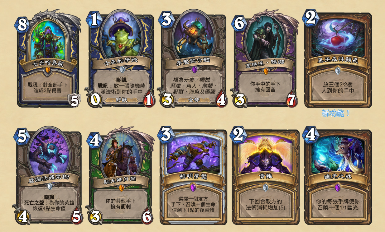 炉石传说女巫森林又重新曝光了10张新卡,小伙伴们是不是对此都很期待呢,那就让我们一起来看看这次曝光的10张卡牌和他们的效果吧,小编会适当的为大家解疑新卡牌的效果!