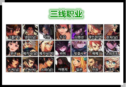 一线职业之中出现了不少拥有辅助能力的职业,气功、鬼泣、帕拉丁。三个超强型的辅助,而且自身也有不错的输出能力。可以帮助团队更好的攻坚魔兽,黑骑、女枪炮、女街霸、驱魔、忍者、修罗、暗帝、团长、特工。都是因为自身持续输出能力过关。并且具有不错的团队效果。
