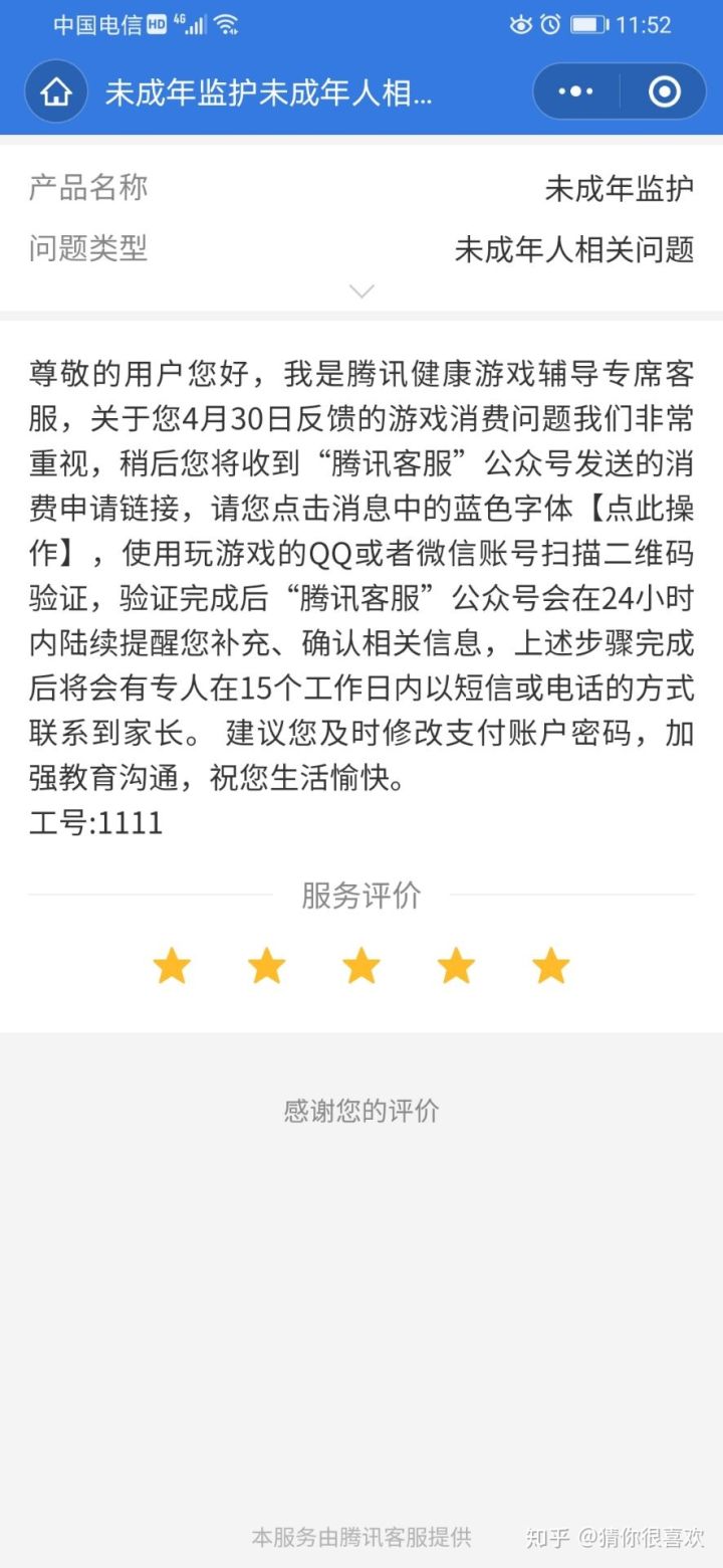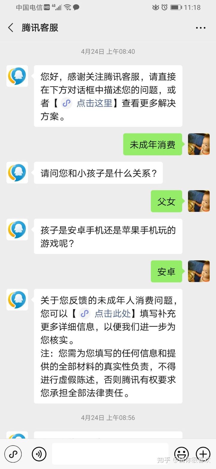 微信添加公众号:腾讯客服 然后发送信息 【未成年消费】 给腾讯客服 如图