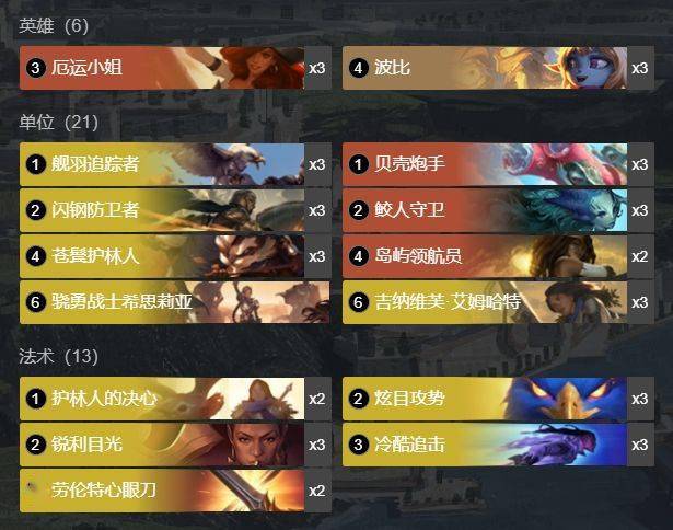 波比的到来,让经典的侦察卡组有了更多构筑空间,它可以buff你的场面,先前你只能依靠德玛西亚的4费效忠来触发。现在,你无需加入更多的德玛西亚卡牌,意味着你可以使用一些比尔吉沃特的卡牌,包括被低估的贝壳炮手好新卡鲛人守卫。加入波比意味着要踢掉奎因,但岛屿领航员是一个不错的替代品,这个卡组还是有足够多的侦察单位。