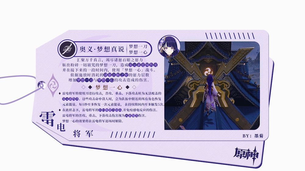 雷电将军在我看来目前有着两种定位——元素爆发特化主C、后台挂雷充能辅。