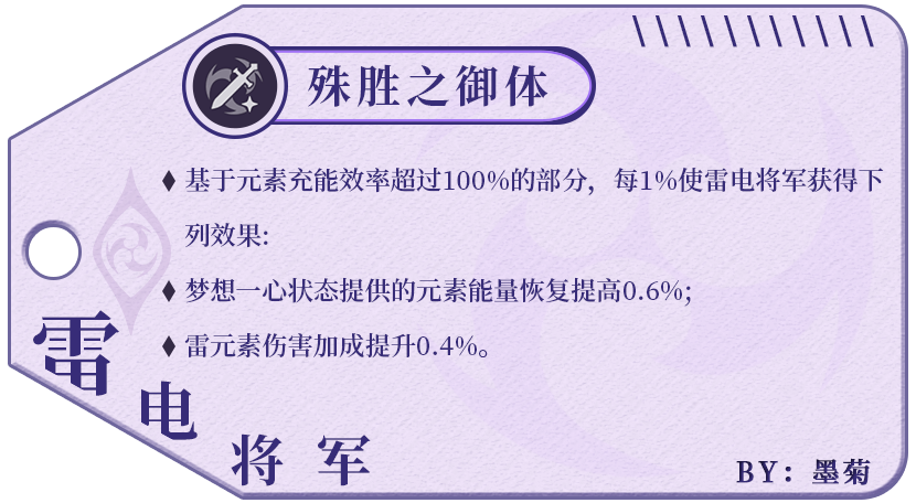 雷电将军的核心天赋之一,它让“元素充能效率”兼顾「输出」和「回能」。