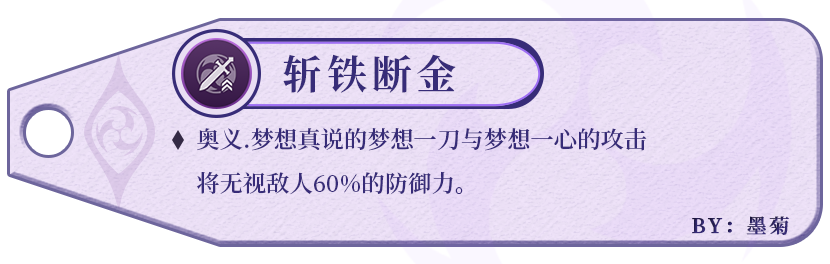 在没有其他减防手段的情况下,可以直接提升「梦想一刀」和「梦想一心太刀」约41%的输出。