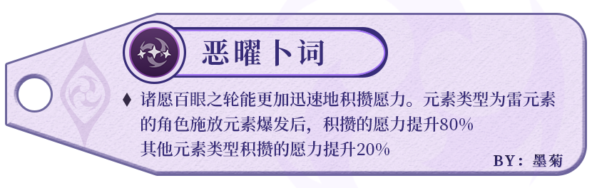 字面意思上来看,该命之座增强了雷电将军的辅助能力,在充能辅的基础上增加了增攻辅的能力。