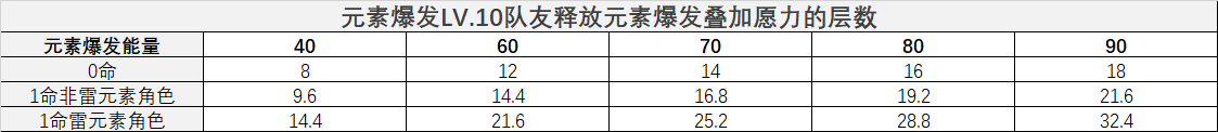 PS:目前游戏里元素爆发所需能量最高的为雷电将军90槽,也就是说该技能对雷电将军自己的元素爆发伤害提升最大......