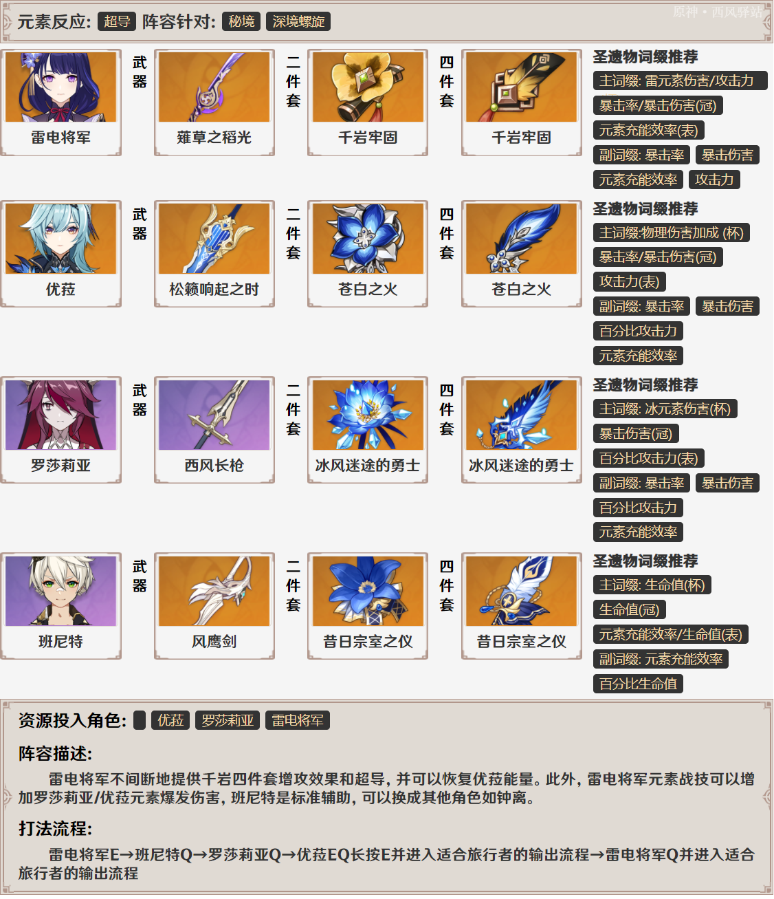 后台挂雷充能辅:千岩四件套>宗室四件套