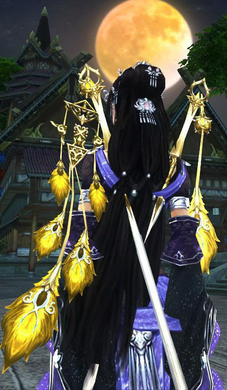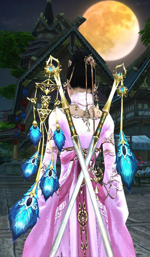 看图就知道,这个也是蛋总掉落的一样治疗武器,不同的是剑上搭配的是金色羽毛,这把剑搭配紫色系蓝色系的衣服,炫到没朋友!