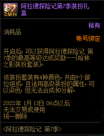 DNF阿拉德探险记第7季上线时间是9月14日金秋版本,高级探险家售价4900点券,高级探险家豪华礼包售价15900点券,其他奖励和第6季没什么区别,本次探险记持续到2022年1月13日。