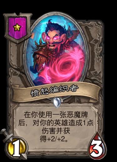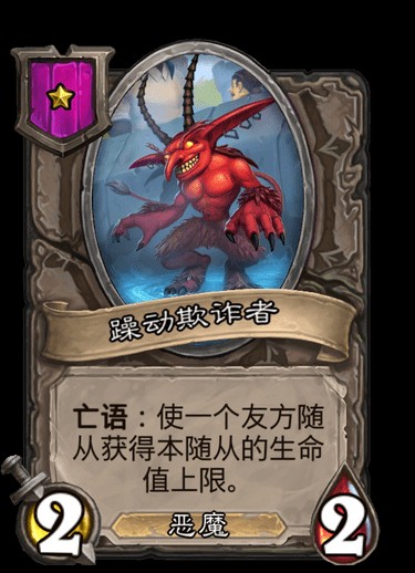 这张随从可以配合恶魔的亡语,一回合涨很多血量。如果有瑞文鹦鹉,一回合上百血都不是问题。