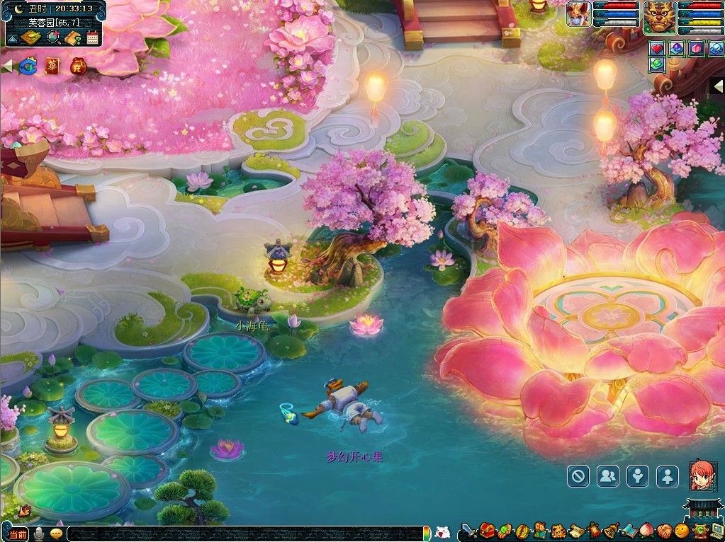 等级大于等于20级,非体验状态的少侠,可以在穿戴泳衣后(夏日清凉、 青花瓷或浪淘纱),单人前往芙蓉园(57,16)找小海龟对话后,在芙蓉园水域内戏水为乐。