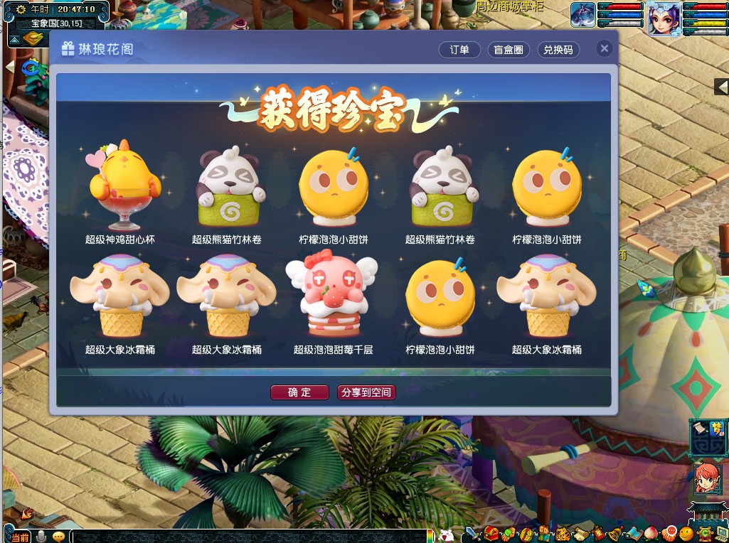 玩家可以通过宝象国(30,15)花铃进入琳琅花阁系统。琳琅花阁中售卖的“花苞”即为盲盒产品。玩家成功购买花苞(盲盒)后,可随机获得对应系列手办,手办商品将以快递的形式将所获手办送达购买者的手中。玩家可选择购买单个盲盒或整套盲盒。详细规则以指定系列盲盒产品详细说明为准。