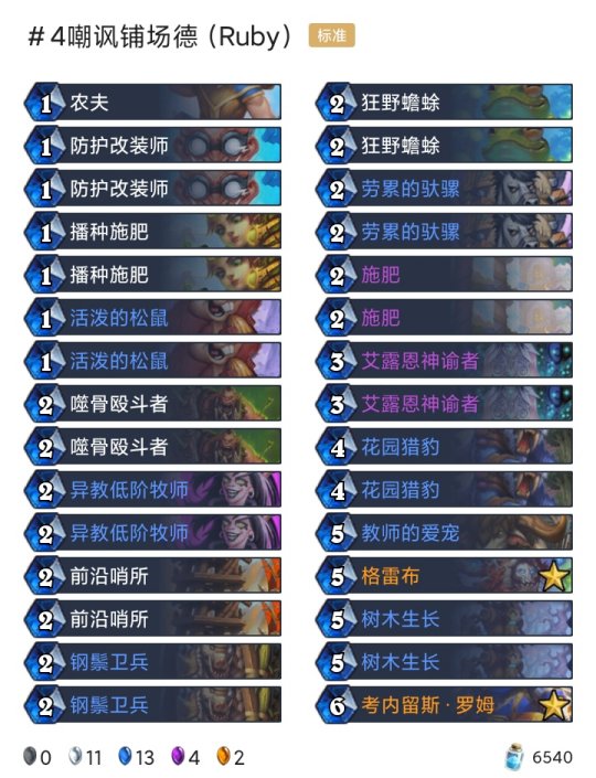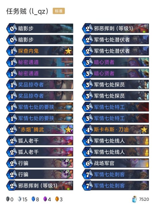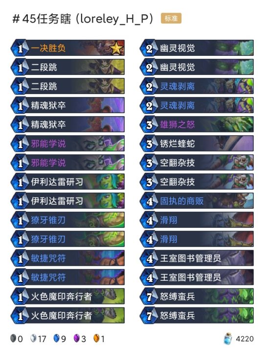 任务瞎(传说45) 任务贼 任务手牌术(传说92) 任务猎 嘲讽铺场德 嘲讽铺场德(传说4) 任务牧