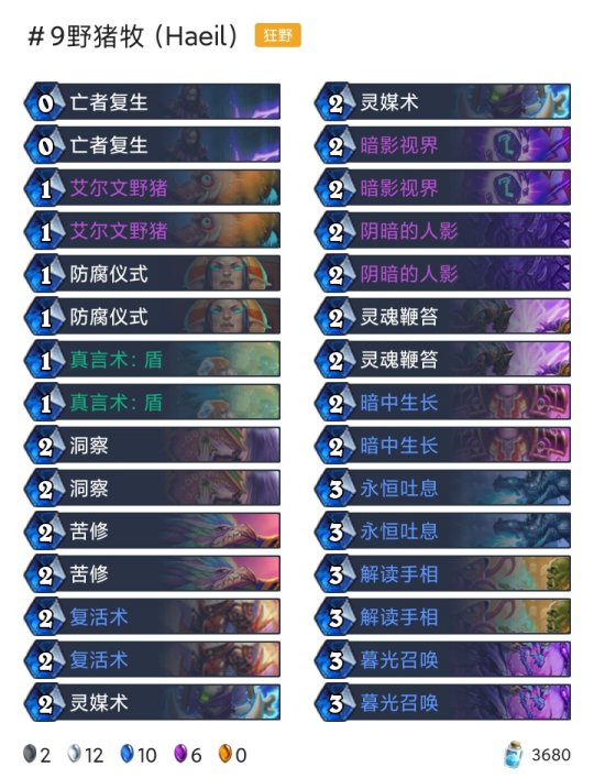 炉石传说每天都有新的卡组被研发出来,不管是狂野模式还是标准模式,尽管两个天梯的卡牌是不一样的,但还是有很多高分的卡组诞生,下面就为大家带来了具体卡组介绍.