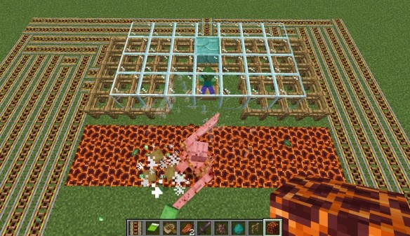 这样就开始刷了,我们还可以在岩浆块下面做个漏斗矿车收集。