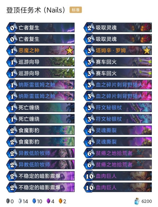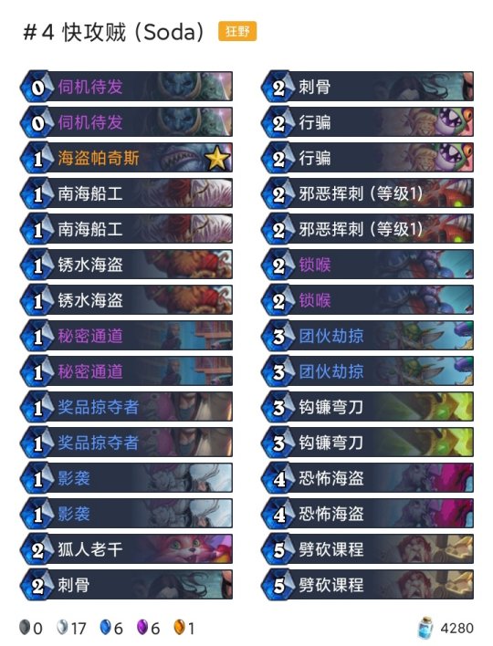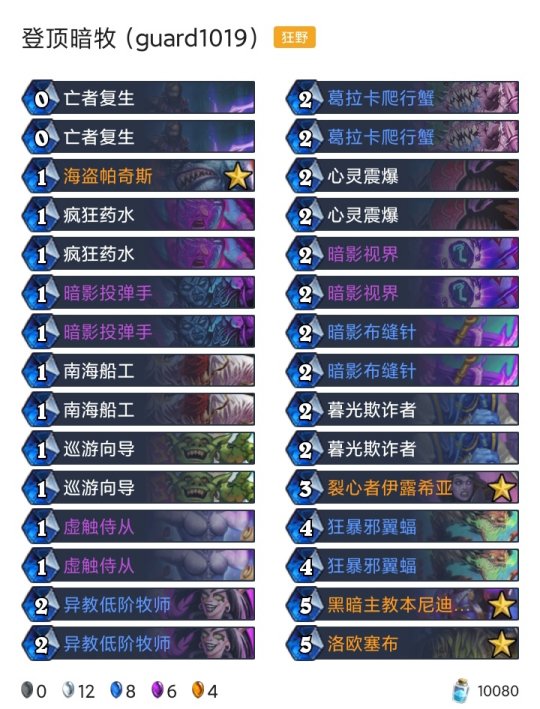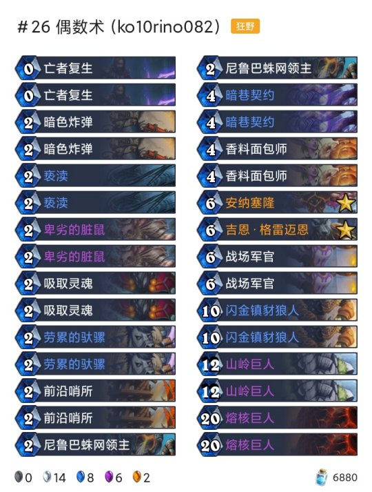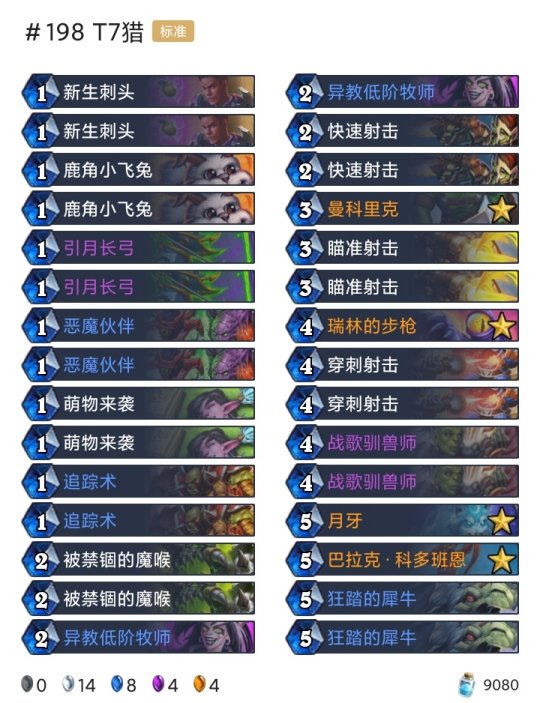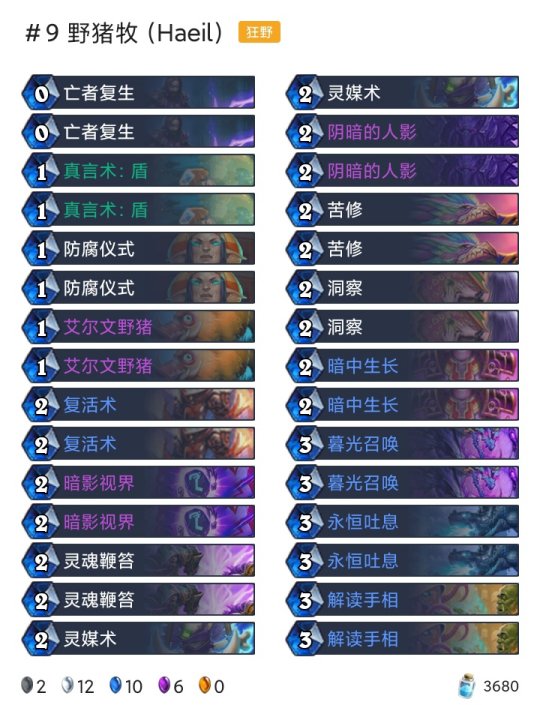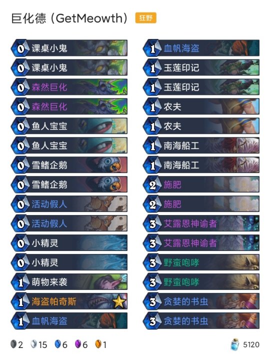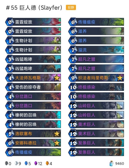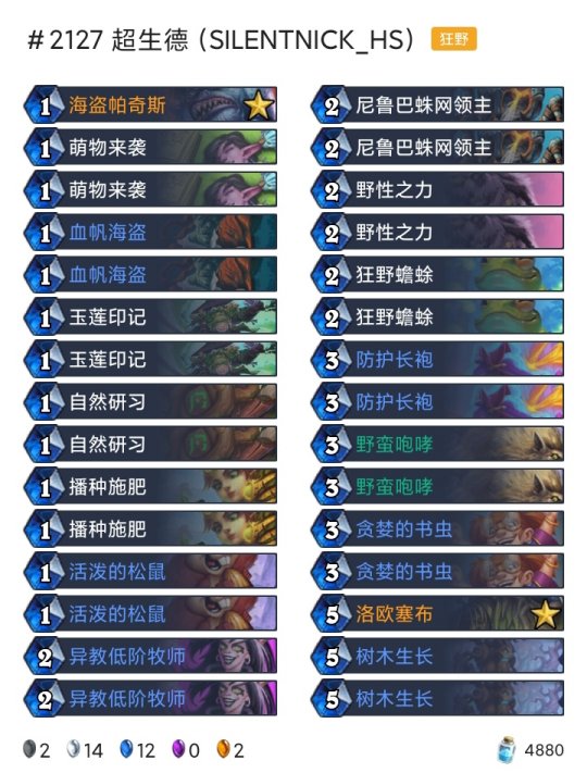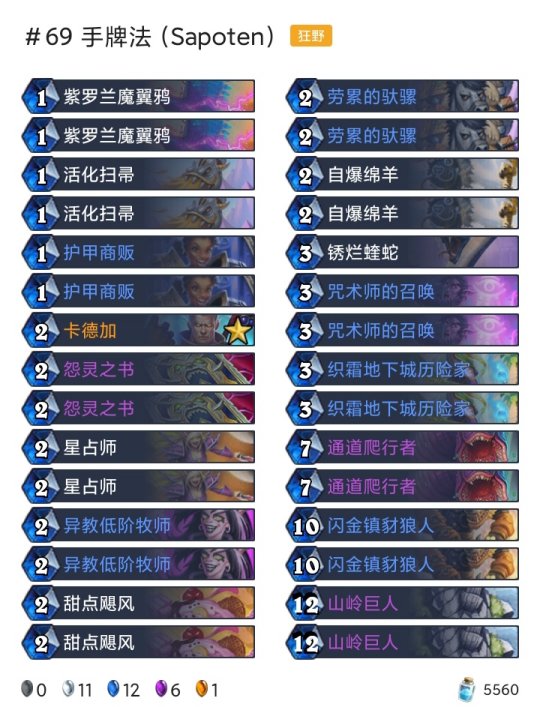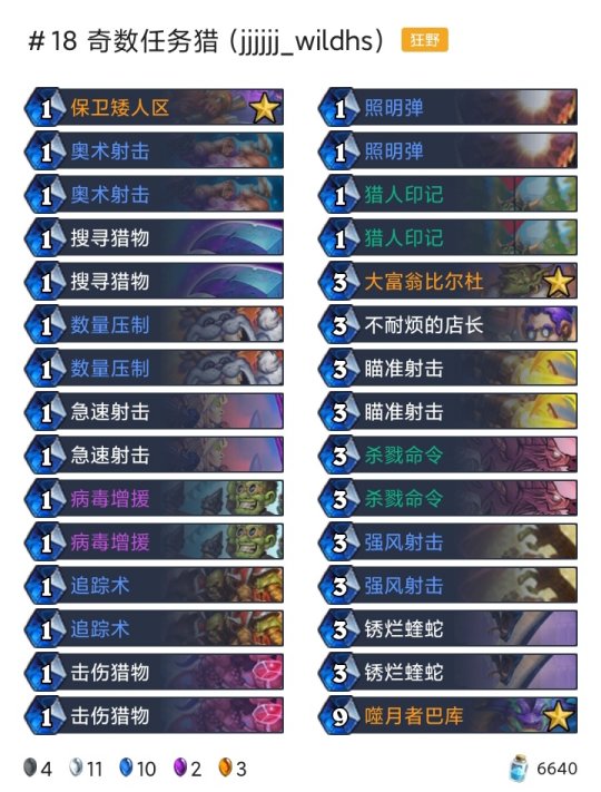 超生德(传说2127) 巨化德 巨人德(传说55) 偶数术(传说26) 奇数任务猎(传说18) 任务德(传说710) 暗牧(登顶) 野猪牧(传说9) 点燃法(传说42) 手牌法(传说69) 快攻贼(传说4) 任务过载萨(传说6)