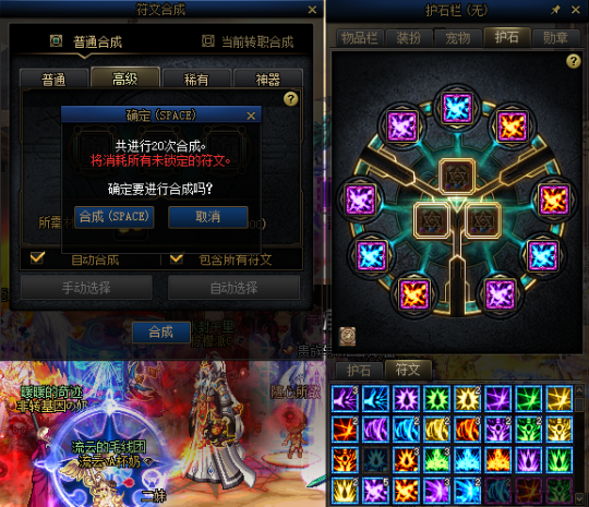 面对这次周常改版,很多玩家无论是遴选、护石、还是符文都已经毕业了。但是部分玩家在刷魔界大战和CP2.0的时候却遇到了烦恼,每次打完之后护石符文基本上都满,虽说护石符文可以自动合成,一下子清空了,但是每次合成都要花费不少的金币,如果号多的情况下,每周少说也需要花费几百上千万,是一个比较大的负担。