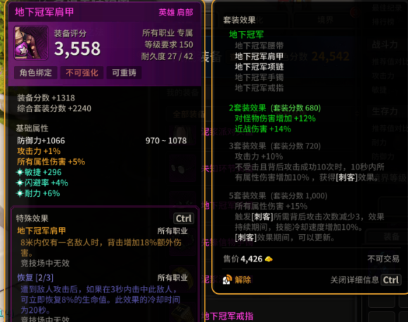 地下冠军五件套+未知环节两件套+海之边缘三件套 刚好一身背击伤害拉满,可以直接用到史诗成套。