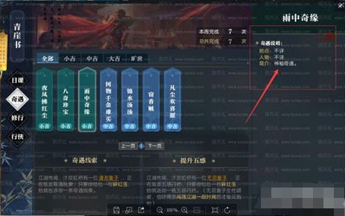 然后下来找到一个npc陶问津对话会进入下一个剧情,跟着任务继续做下去就会完成奇遇。