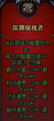 出门装选择了[深渊窥视者上衣],后续应优先选择所有属性强化+30卡牌,直至100触发装备最高属性,绿牌最终伤害可不选择,装备自带最终。