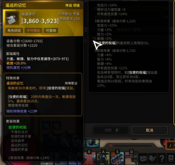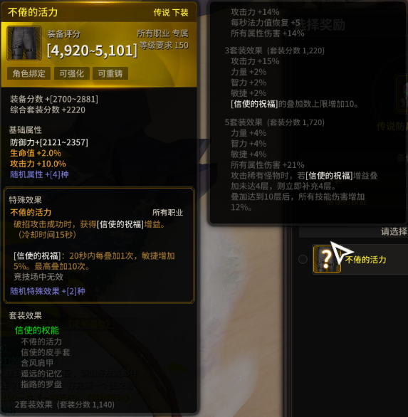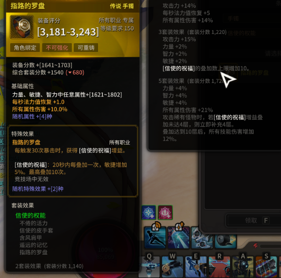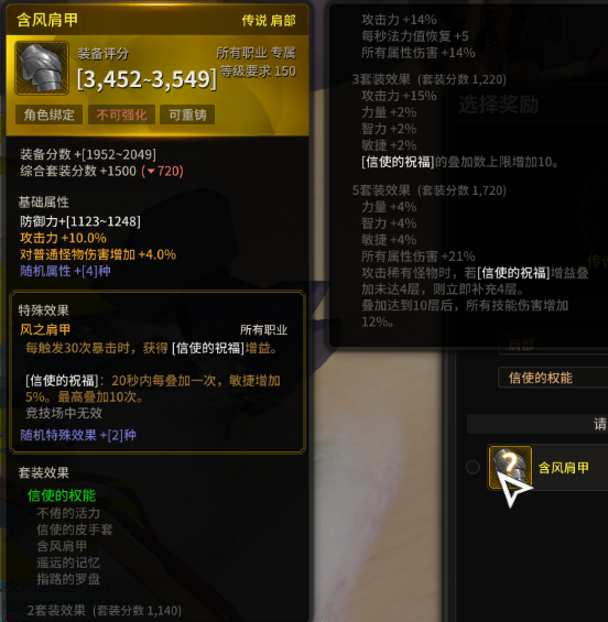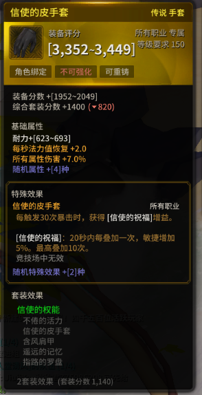 信使的权能套装有5个部位,不倦的活力、信使的皮手套、含风肩甲、遥远的记忆和指路的罗盘。