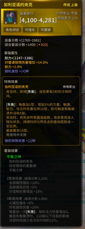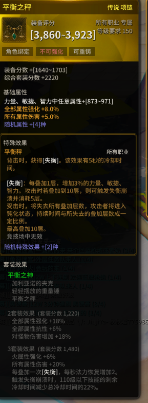 超激斗梦境中,玩家满级之后就要刷金色传说套装了,游戏里的金色传说套装有很多,其中就包括平衡之神套装,那么超激斗梦境平衡之神套装属性是什么?下面就给大家带来超激斗梦境平衡之神套装图鉴。