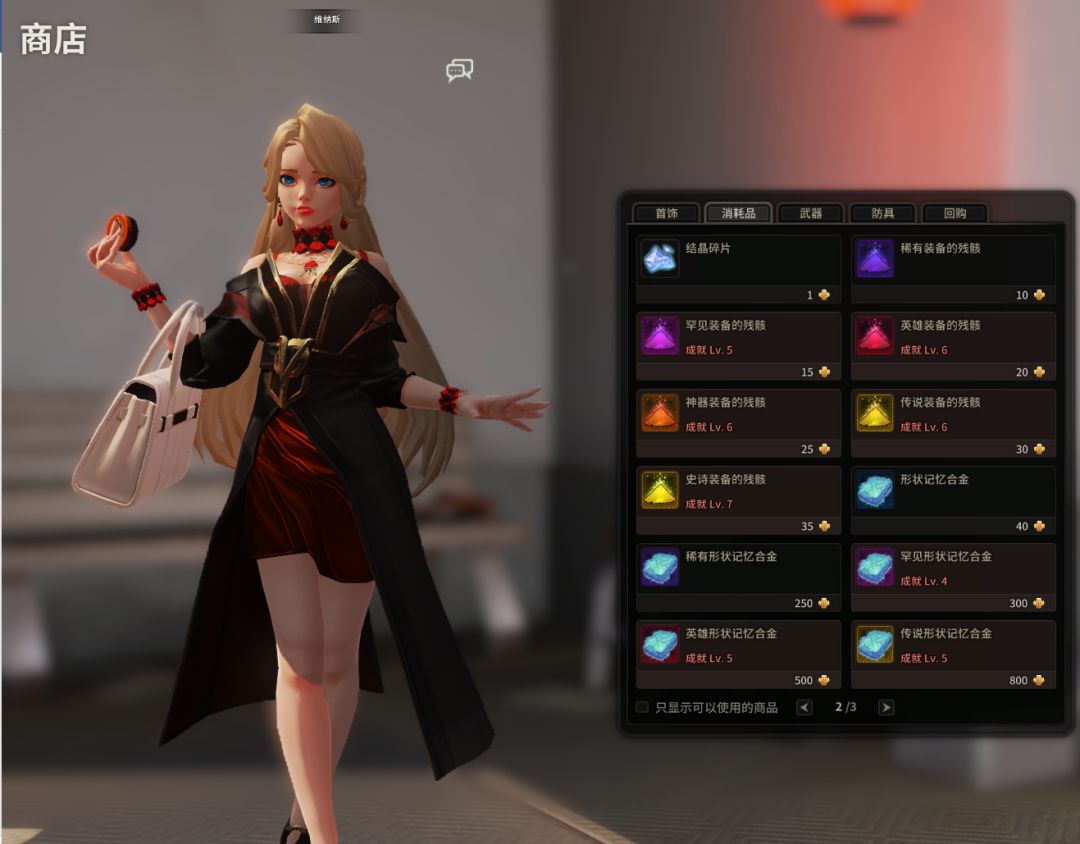 3、玩家可以至维纳斯-硬币商店(消耗品)处在商店中购买装备残骸和结晶碎片;