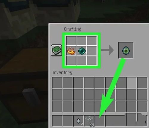 制作4个“末影之眼”。将4个“末影珍珠”放在合成界面的中间方块,然后将堆叠的4个“烈焰粉”放在合成界面的中间偏左的方块中,然后将“末影之眼”移动到你的背包中。