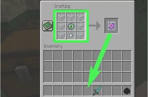 制作4个“末影水晶”。将4个“末影之眼”放在中间方块,然后将4个玻璃放在剩下的方块中。当蓝紫色的“末影水晶”图标出现时,你就可以将“末影水晶”移动到你的背包中。